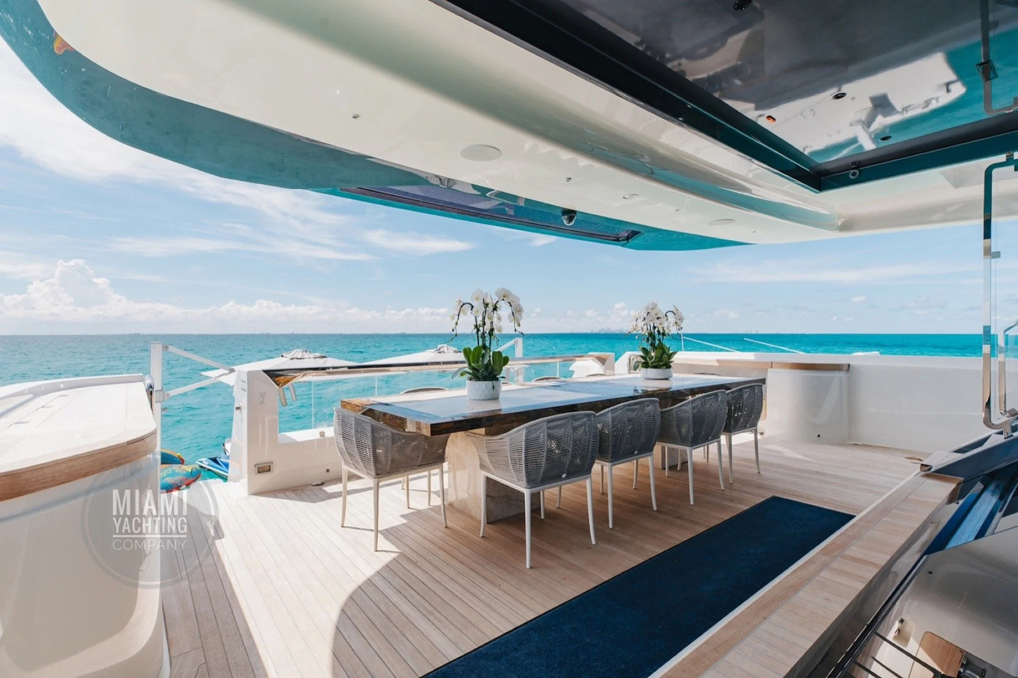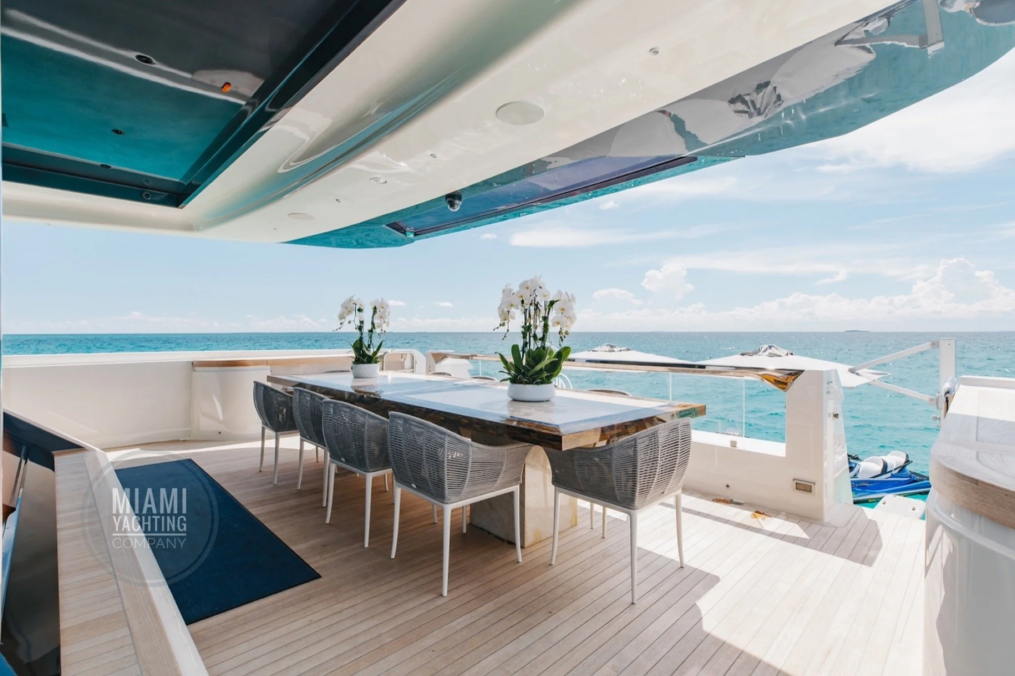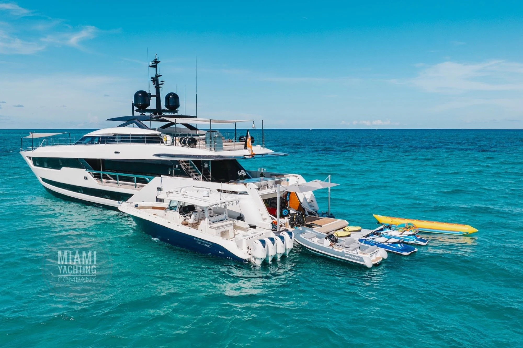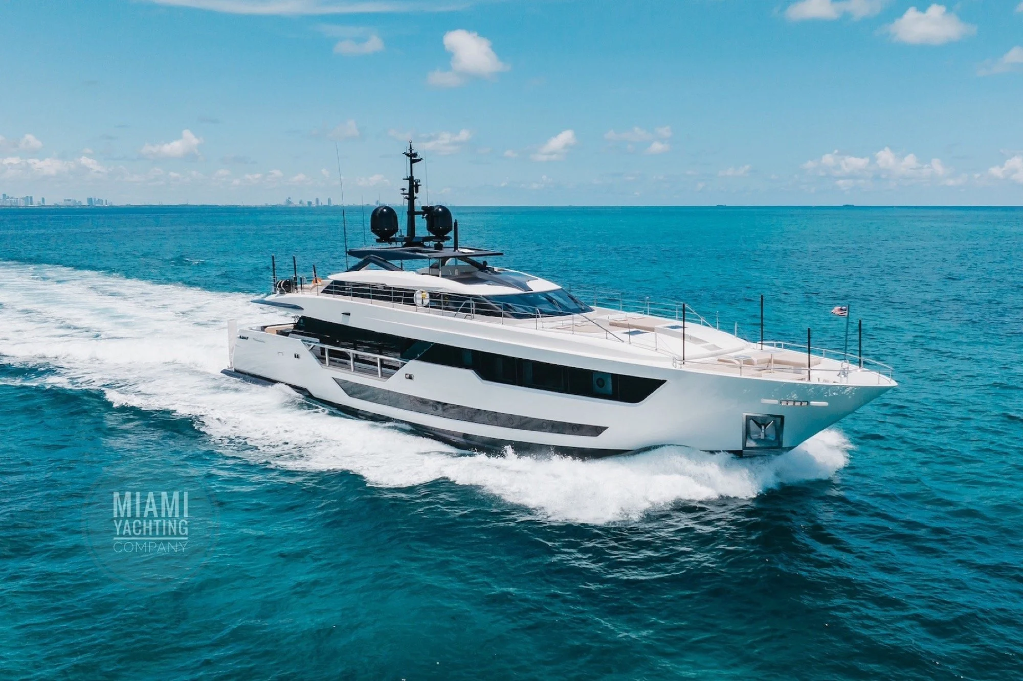 This 126 ft Custom Line superyacht by Ferretti represents the pinnacle of Italian superyacht craftsmanship, delivering scale, presence and refined luxury for guests seeking an elevated Miami yacht charter experience. Designed for comfort, elegance and long range cruising, this yacht offers expansive outdoor living areas and a commanding profile that stands out anywhere in Biscayne Bay.