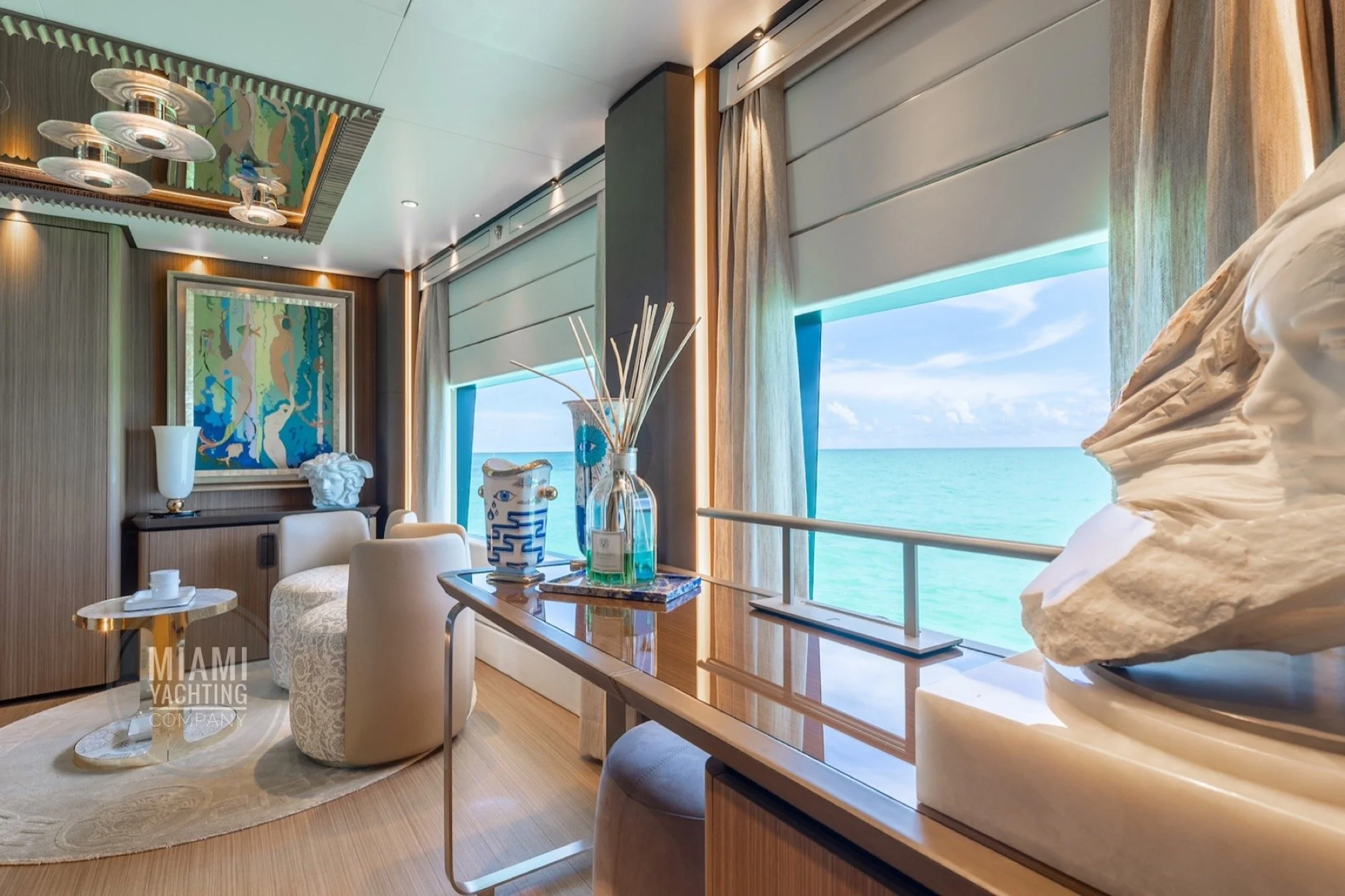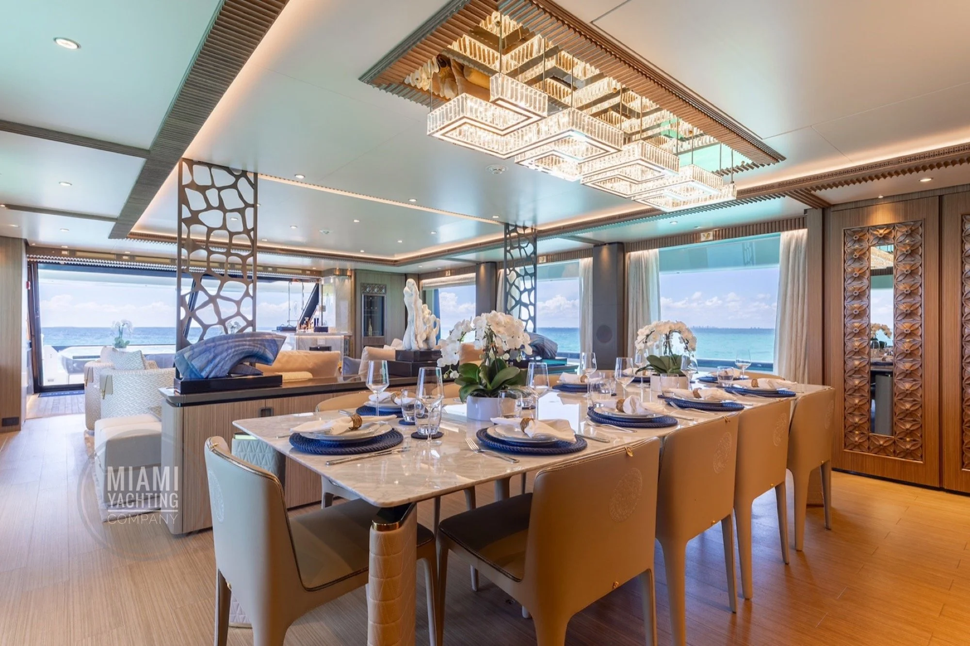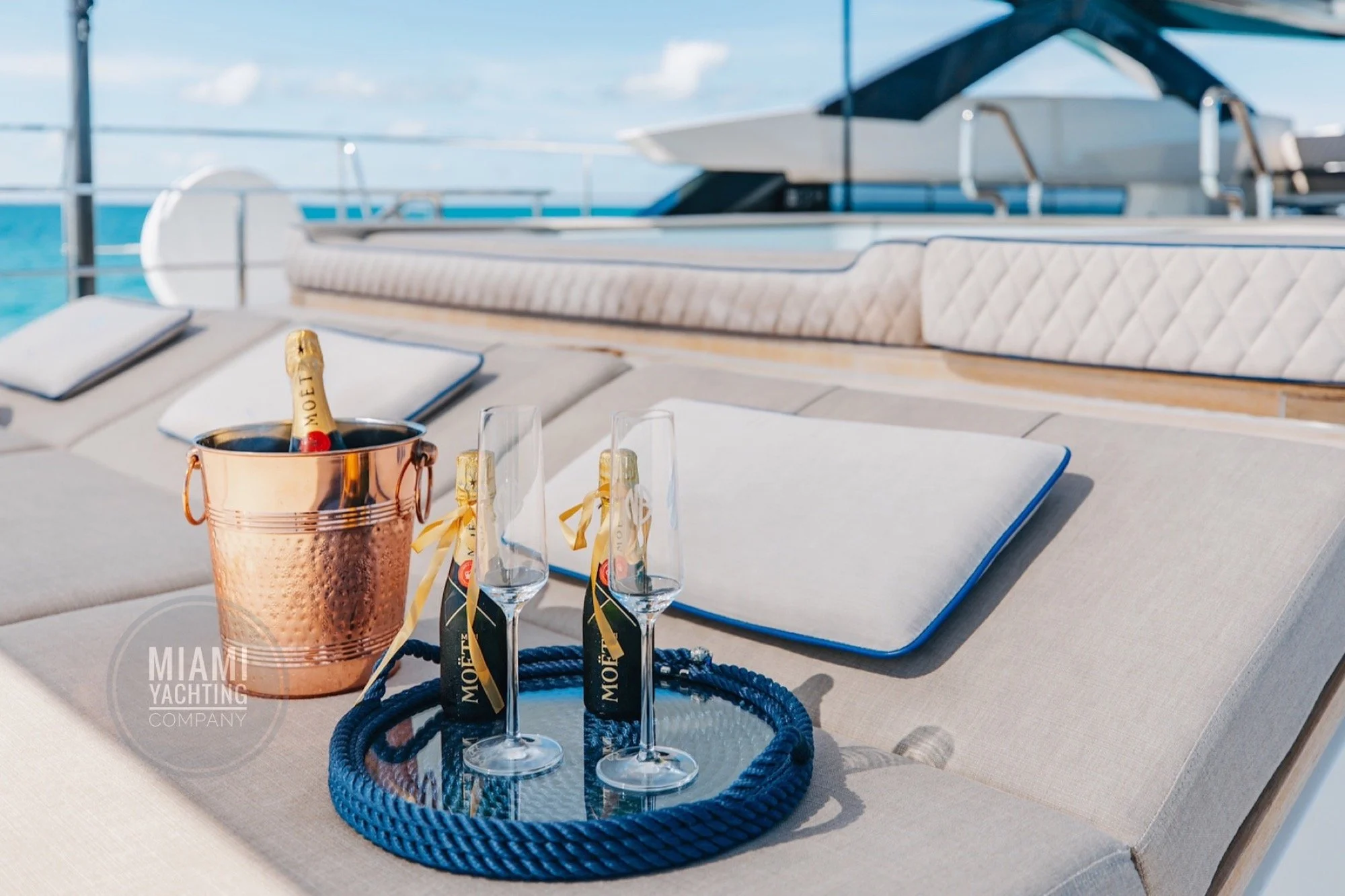 Departing from Miami, this superyacht is ideal for cruising Biscayne Bay, enjoying open water sightseeing and hosting high end celebrations in total privacy. In addition to Miami based charters, this yacht is also available for term charters to the Bahamas, offering guests the opportunity to explore iconic island destinations in complete luxury.