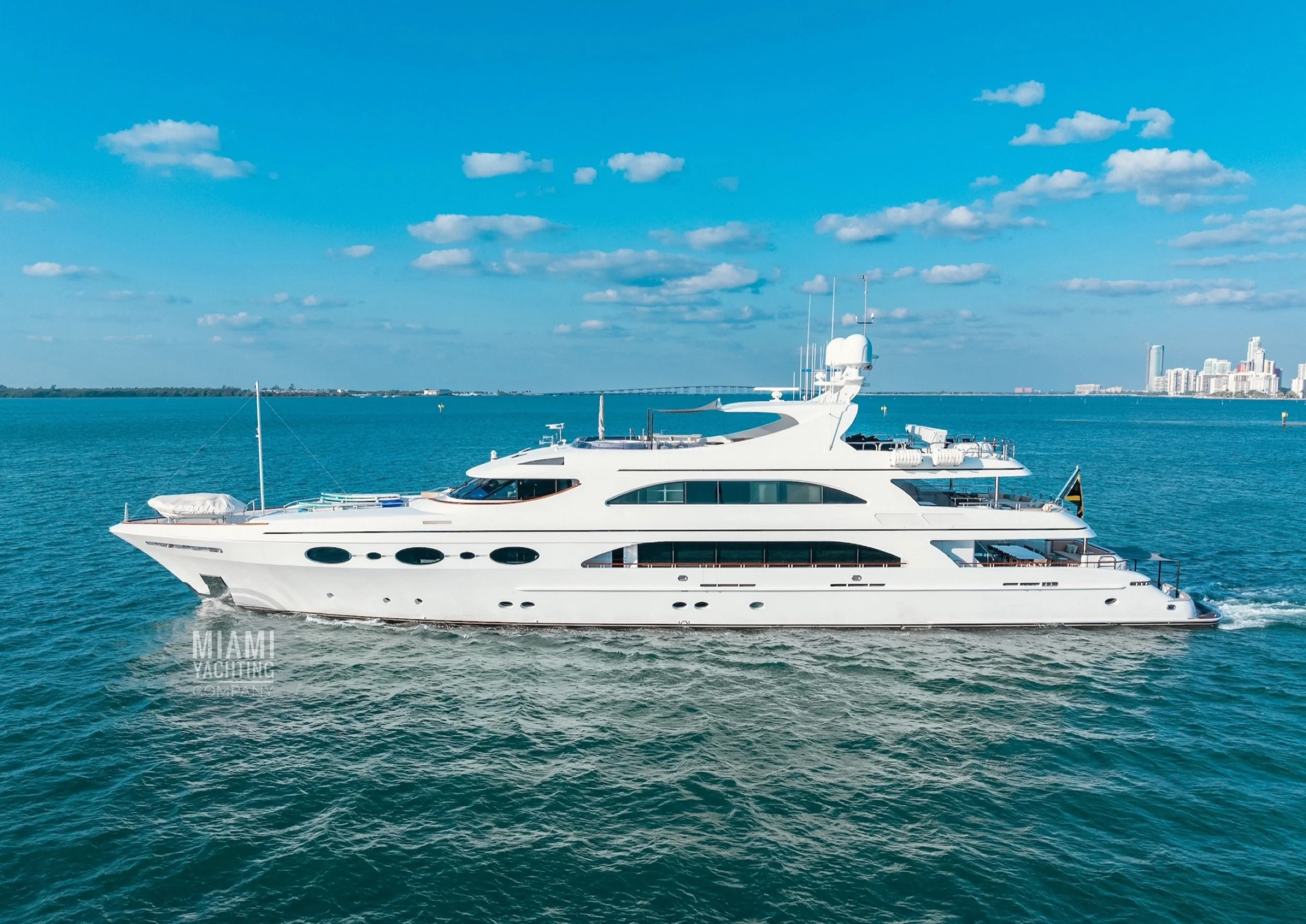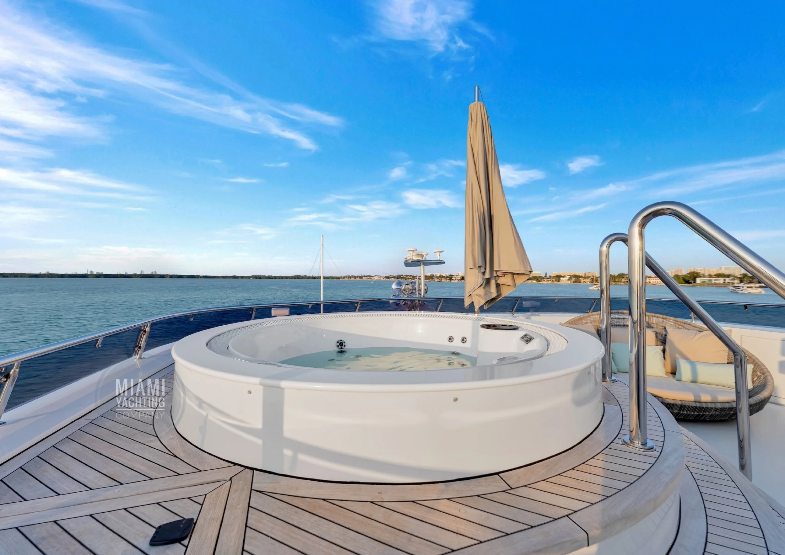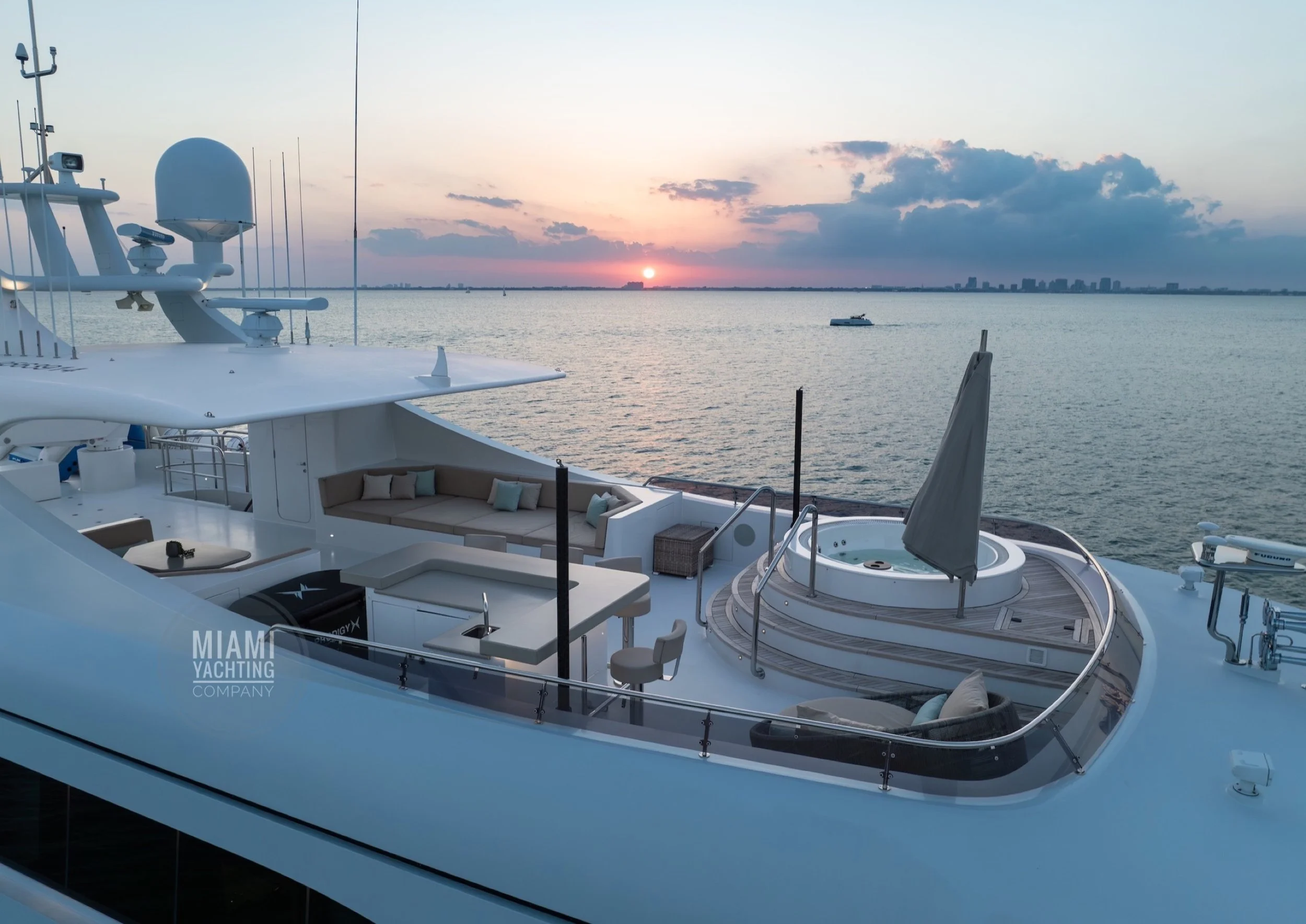 Recently refitted with premium finishes and cutting-edge amenities, this Trinity yacht exudes elegance and power across every deck. Her generous outdoor spaces offer the perfect backdrop for entertaining or unwinding in the sun. Enjoy panoramic views from the circular Jacuzzi and full-service bar on the sundeck, or gather for unforgettable meals at the expansive alfresco dining areas. Whether anchored off a private island or cruising through turquoise waters, this 165 ft vessel delivers a yachting experience like no other.