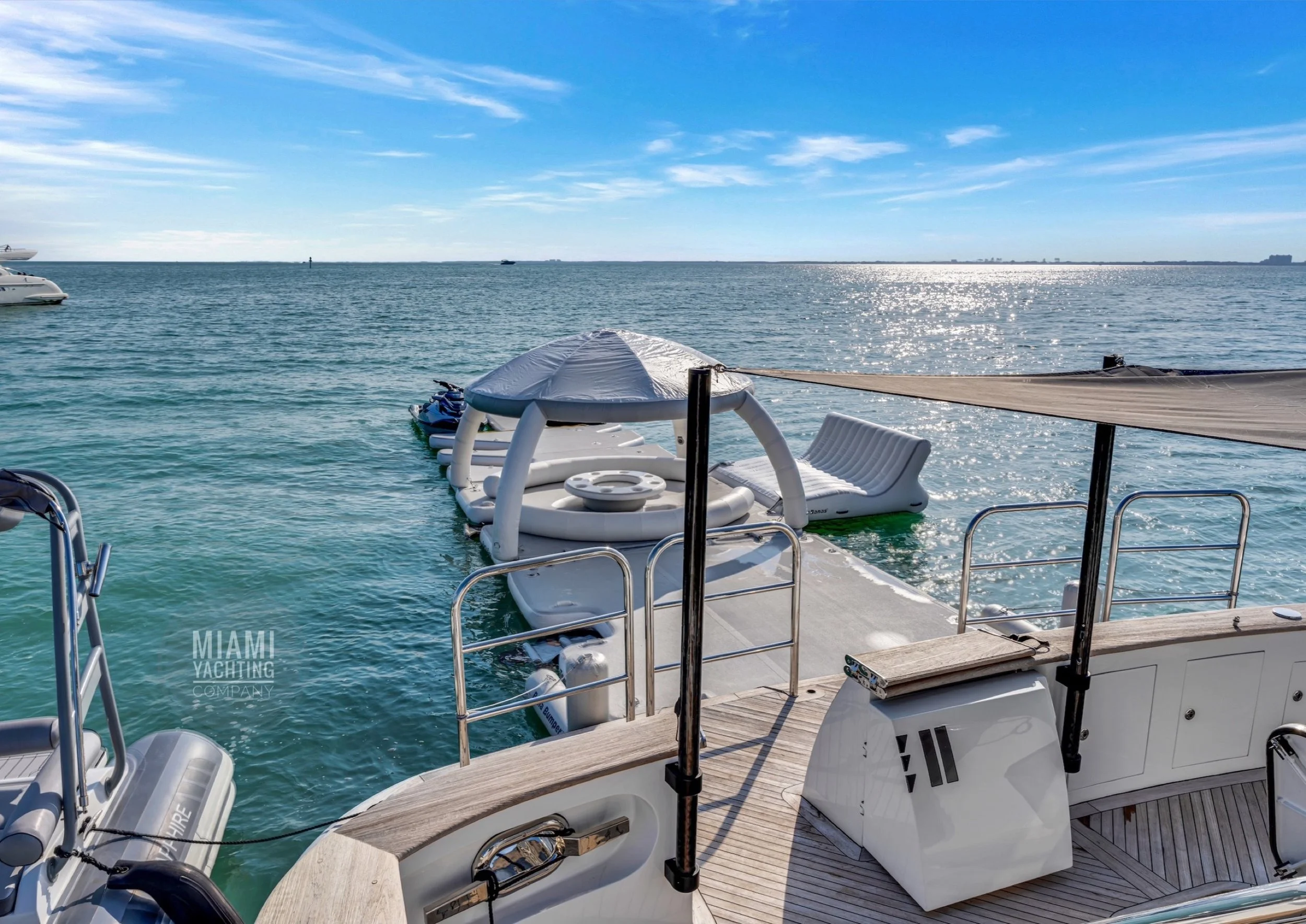 This stunning yacht is also available for overnight term charters to the Bahamas. Explore iconic destinations like Nassau, Staniel Cay, or Bimini for shorter escapes. Whether you're discovering hidden coves or island-hopping by Jet Ski, this Trinity yacht offers the perfect platform for both adventure and tranquility.