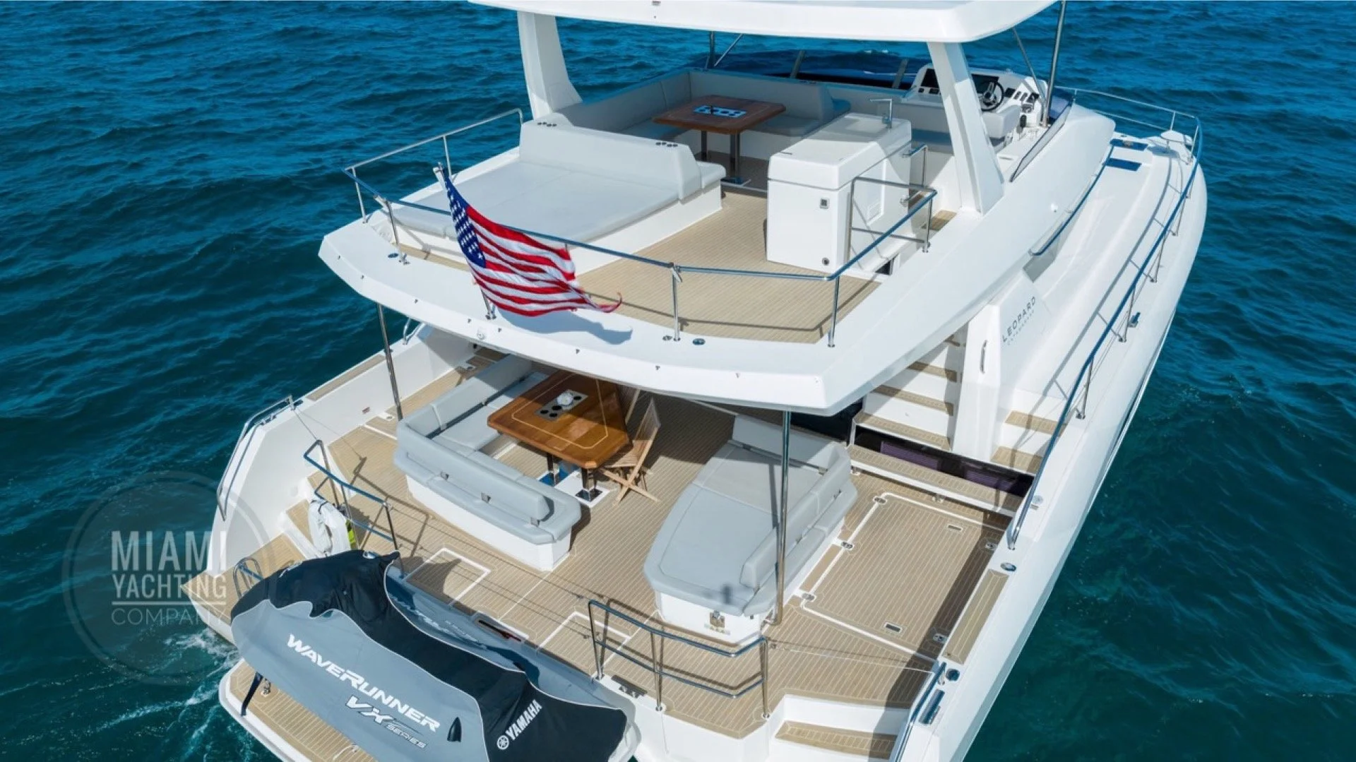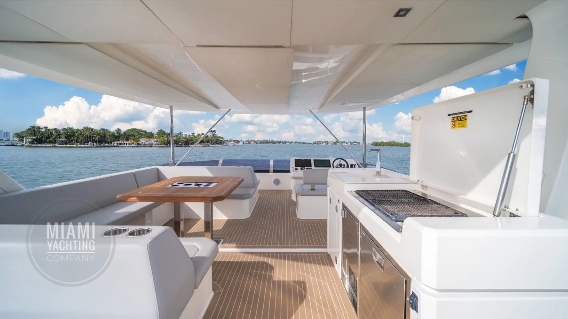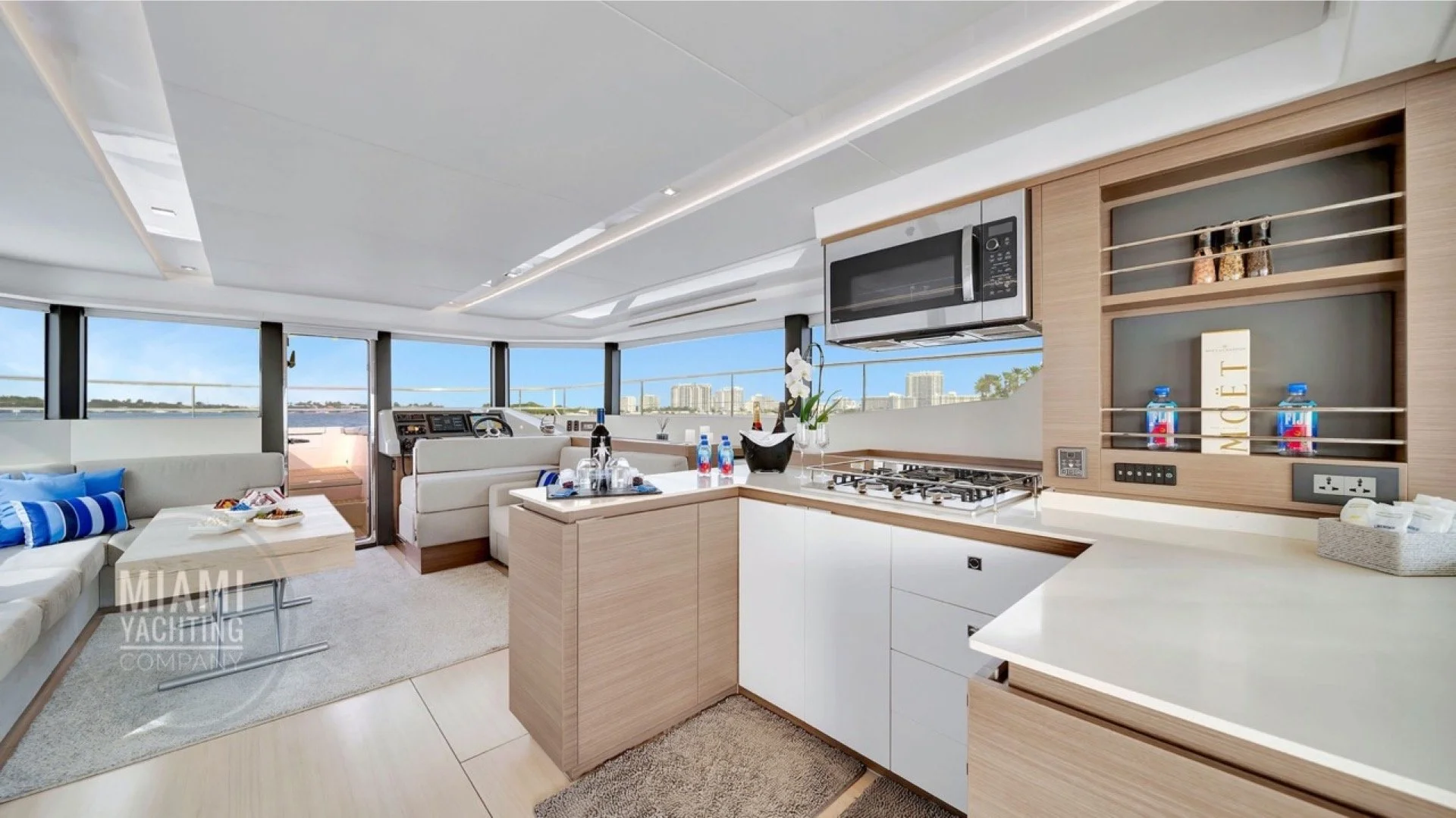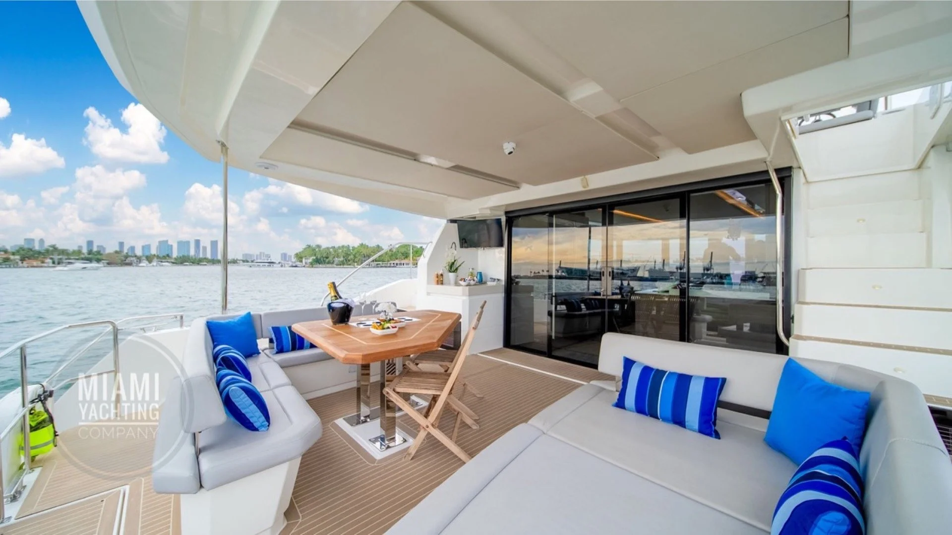 Bask in outdoor entertainment like never before aboard the Leopard 53, where every detail is tailored to enhance your Miami yacht rental experience. From the ample seating encircling a spacious table on deck to the intuitive design of the flybridge and helm station, every element is meticulously crafted to anticipate your every need. Whether you're gathering with friends to recount the day's adventures, savoring a meal against the backdrop of breathtaking Miami views, or simply relishing in the salt-kissed breeze, the Leopard 53 sets the stage for unforgettable moments on the water. Embark on your Miami adventure and let the Leopard 53 Powercat redefine your cruising experience.
