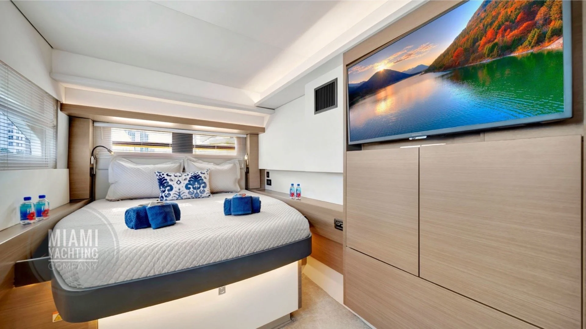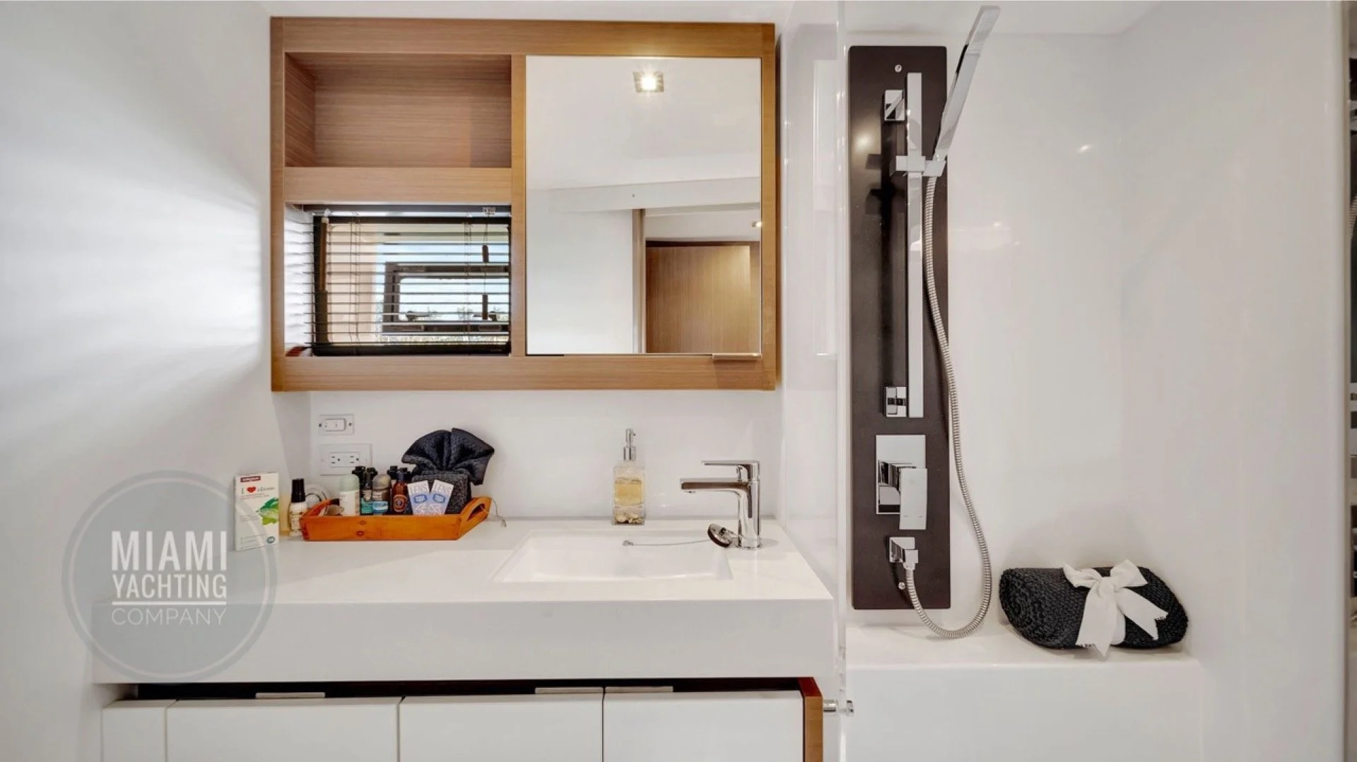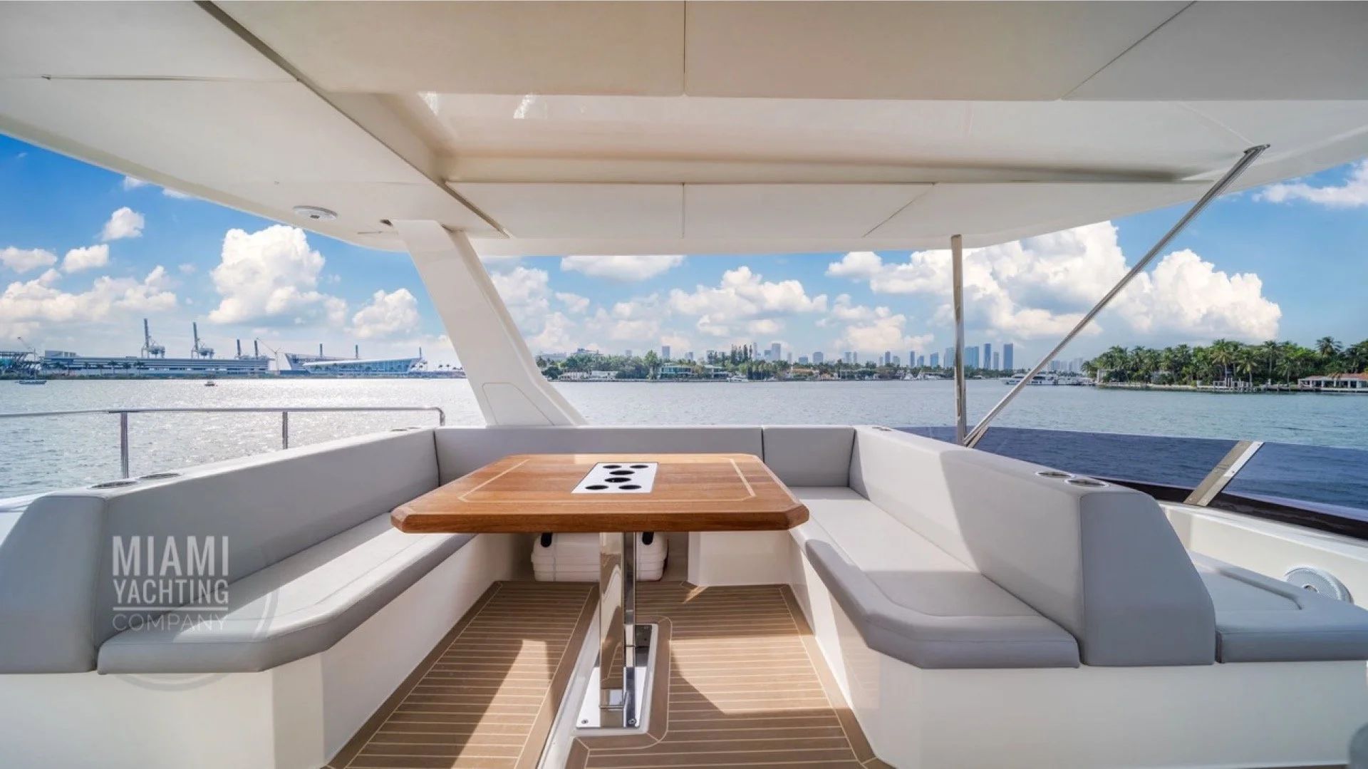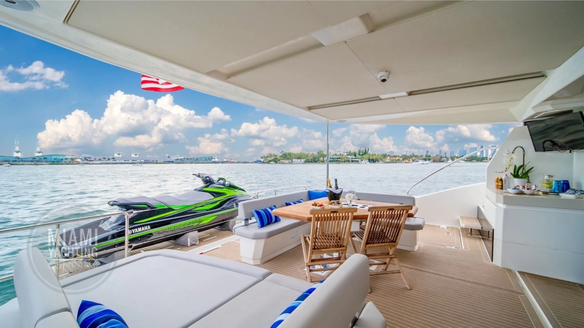 Bask in outdoor entertainment like never before aboard the Leopard 53, where every detail is tailored to enhance your Miami yacht rental experience. From the ample seating encircling a spacious table on deck to the intuitive design of the flybridge and helm station, every element is meticulously crafted to anticipate your every need. Whether you're gathering with friends to recount the day's adventures, savoring a meal against the backdrop of breathtaking Miami views, or simply relishing in the salt-kissed breeze, the Leopard 53 sets the stage for unforgettable moments on the water. Embark on your Miami adventure and let the Leopard 53 Powercat redefine your cruising experience.