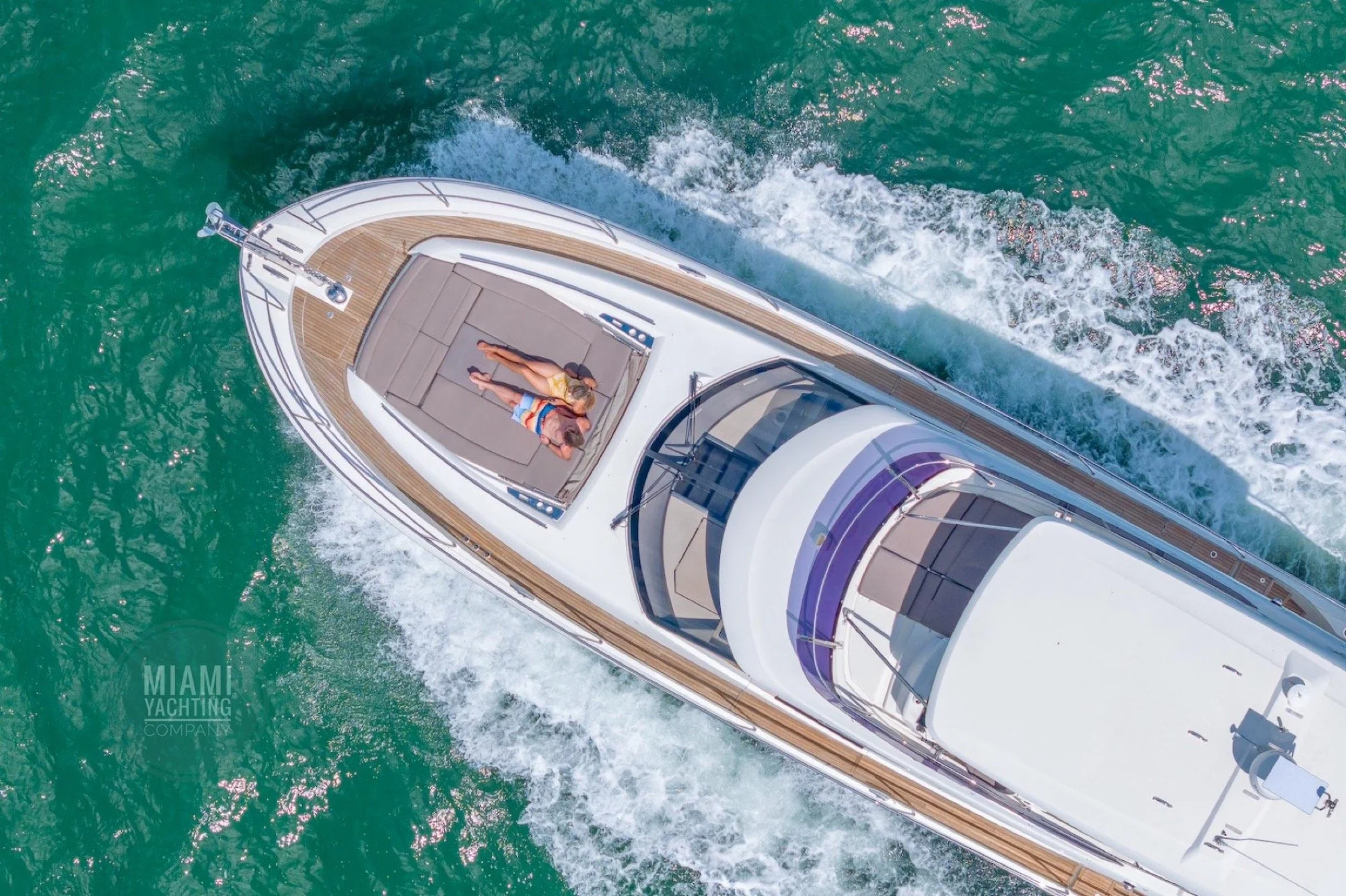 For those searching for a refined boat charter Miami experience, the Prestige 560 provides generous outdoor seating areas and a sophisticated layout that allows guests to enjoy Biscayne Bay cruising in comfort while experiencing the vibrant coastal scenery that defines Miami.