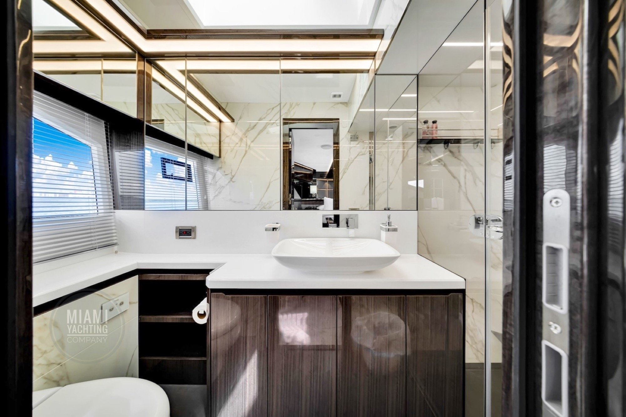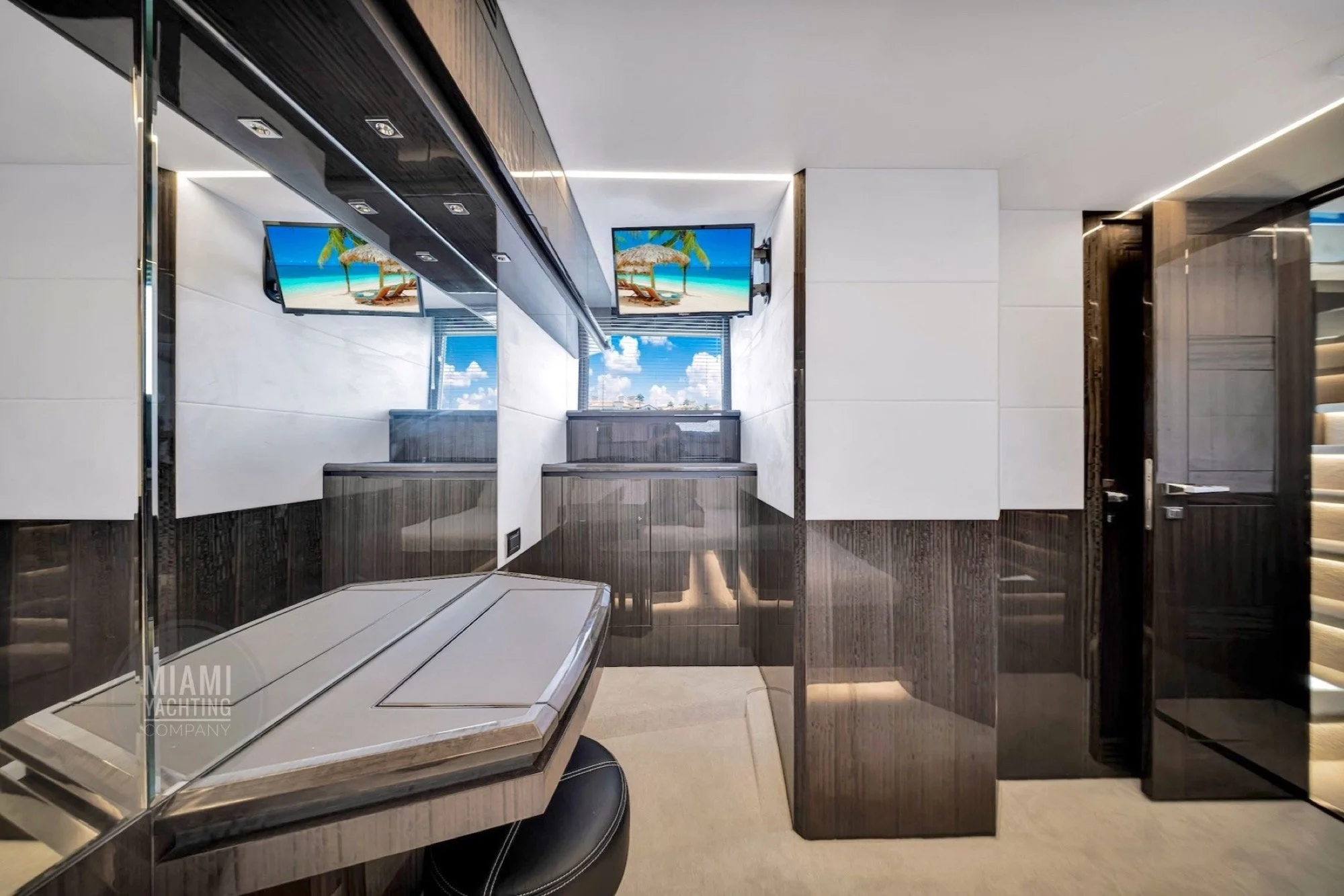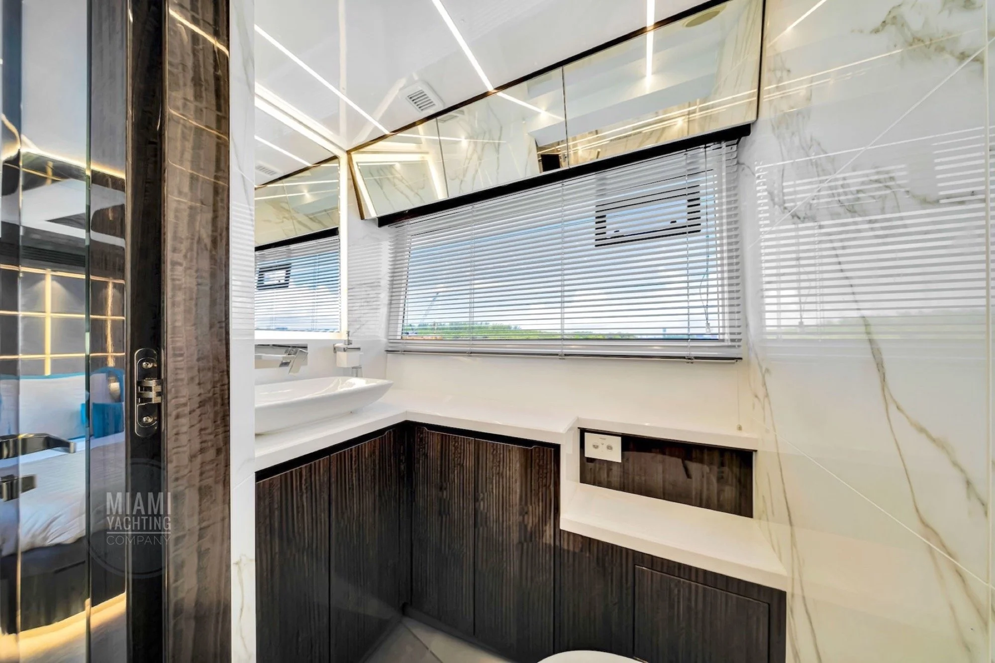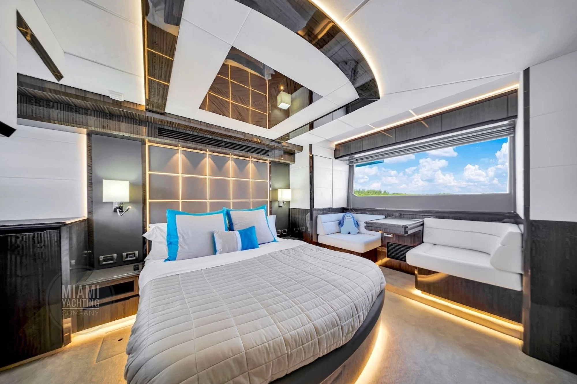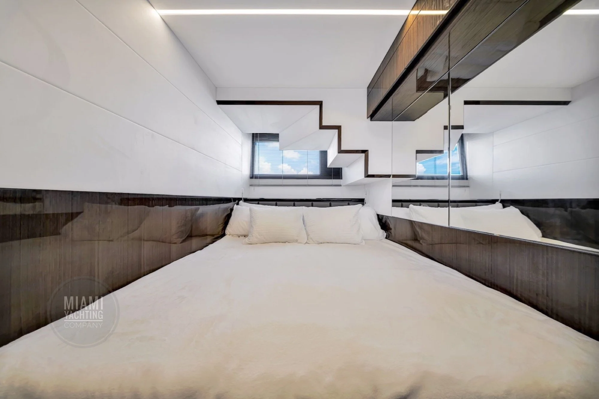 Inside the yacht features a bright modern interior with large windows clean lines and premium finishes that create an inviting environment between destinations. Whether planning a celebration a relaxed day on the water or a private Miami yacht charter this versatile yacht delivers a polished and memorable way to explore the city from the water.