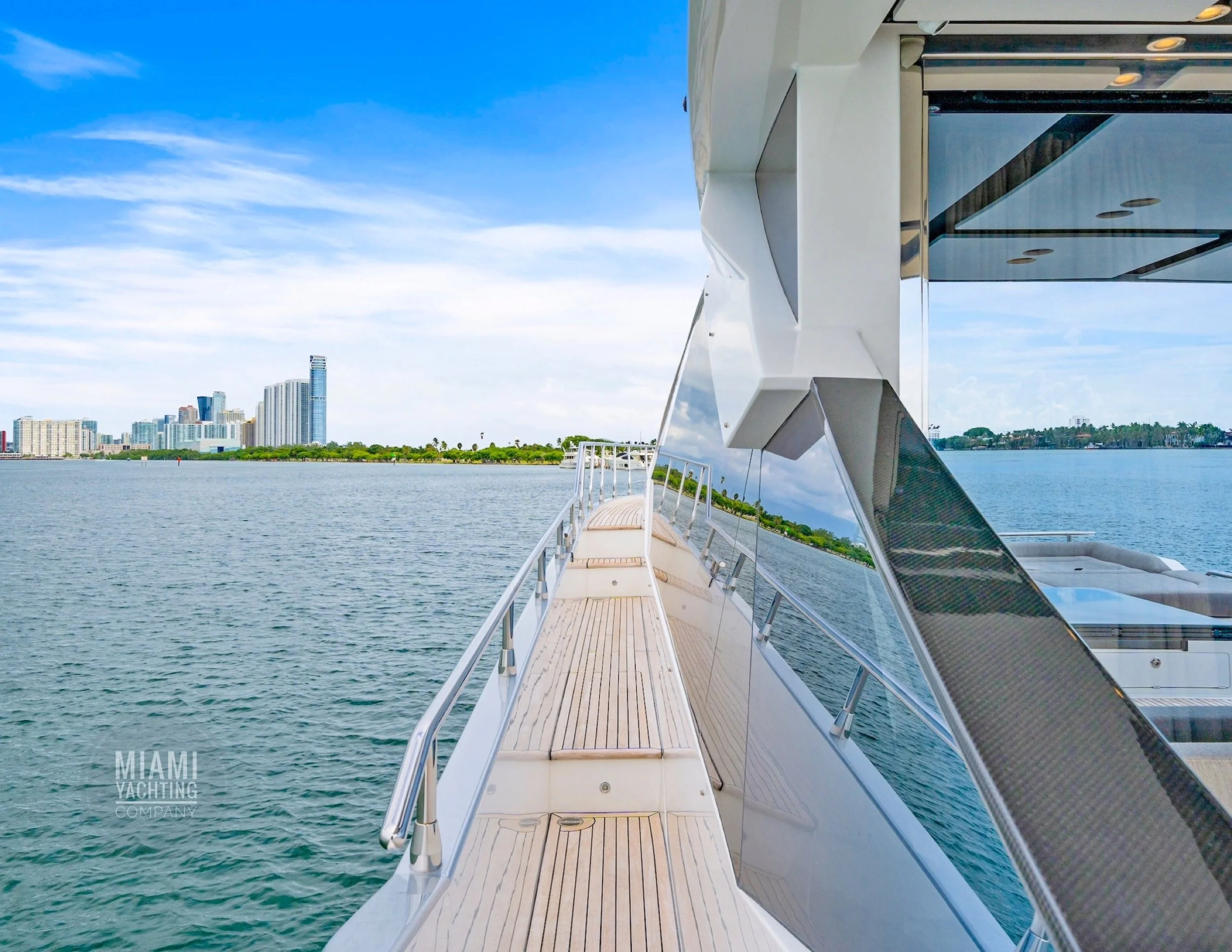 The Azimut 72 S7 is one of those boats that makes an instant impression. With its sculpted exterior, powerful stance, and unmistakably Italian design, it stands out in any marina and turns heads across Biscayne Bay. For those seeking a high end yacht rental in Miami that combines performance with striking elegance, this vessel delivers on every level.