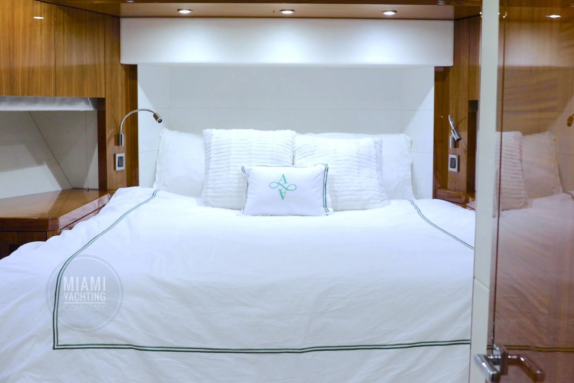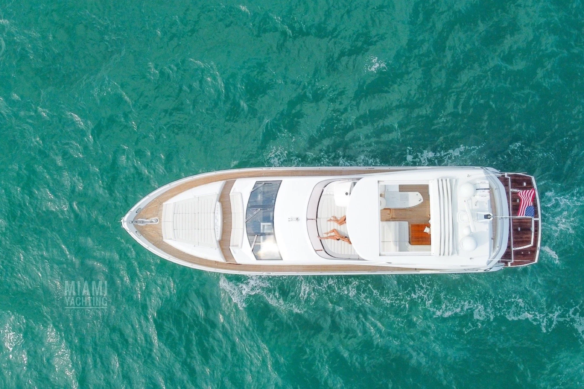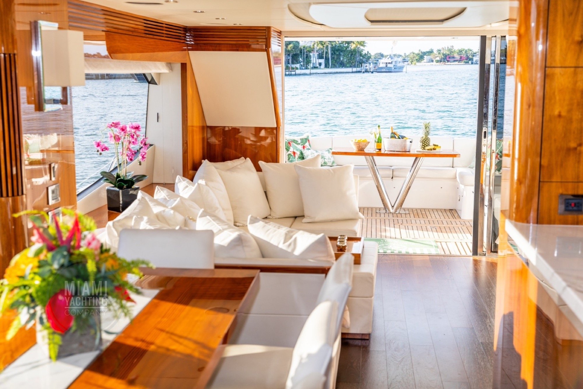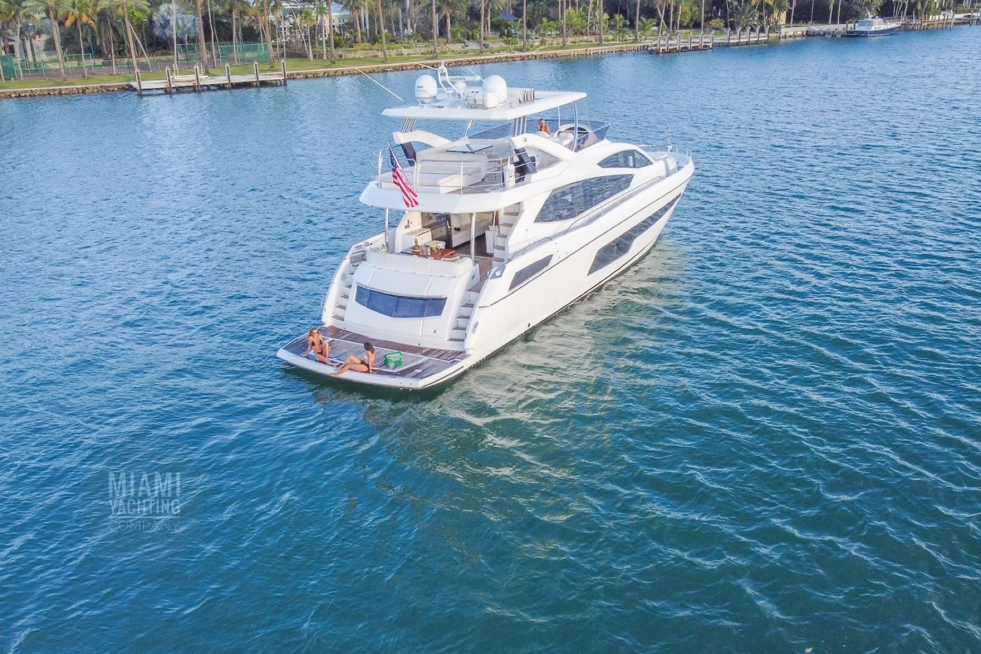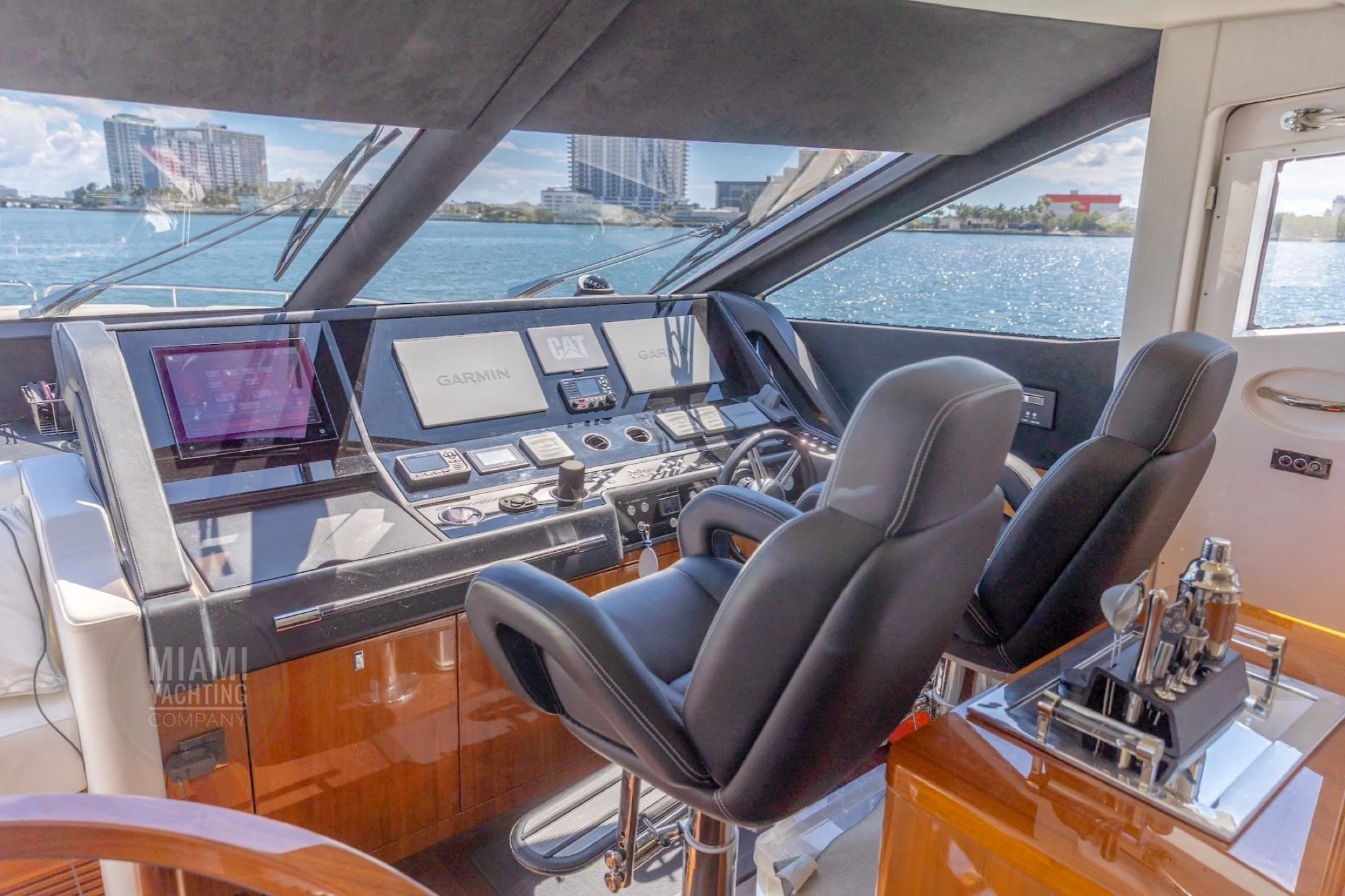 The flybridge features ample seating, sun lounging areas and an open layout ideal for gathering with guests while taking in wide views of Biscayne Bay and the Miami skyline. Inside, the yacht offers a bright and contemporary salon with large windows, high end finishes and a seamless flow between indoor and outdoor spaces. Multiple staterooms provide private and comfortable accommodations, creating a setting that feels both welcoming and luxurious.